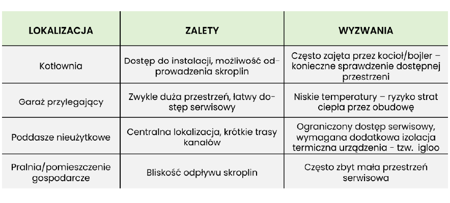 Niezależnie od lokalizacji rekuperator musi mieć zapewnione: